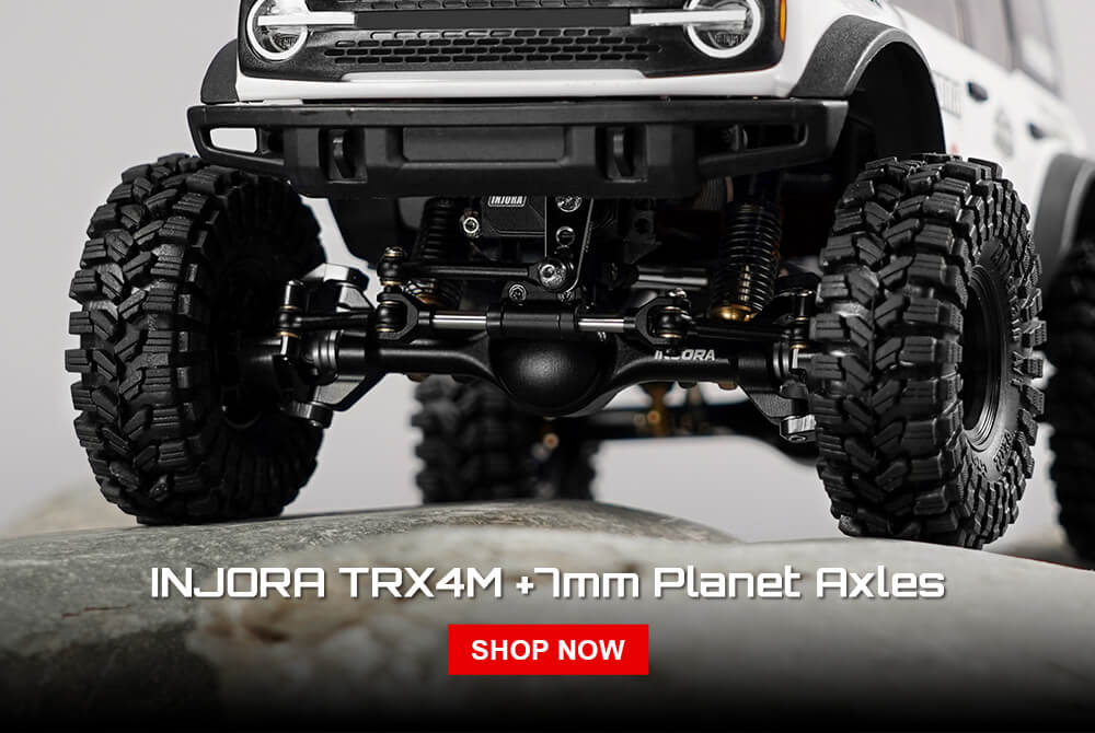 INJORA +7mm Planet Axles with Double Joint Shafts & Scale Hydraulic Steering for 1/18 TRX4M Upgrade