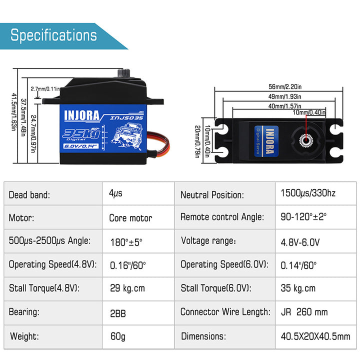 INJORA INJS035 35KG Large Torque Waterproof Metal Gear Digital Servo for RC Model