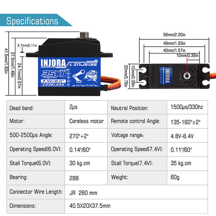 INJORA INJS135 35KG Waterproof Large Torque Digital Coreless Servo for RC Model (270 degrees)