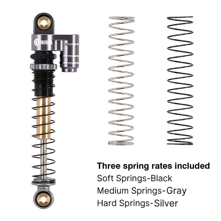 - Three spring rates included: Black - soft, Grey - medium, Silver - hard