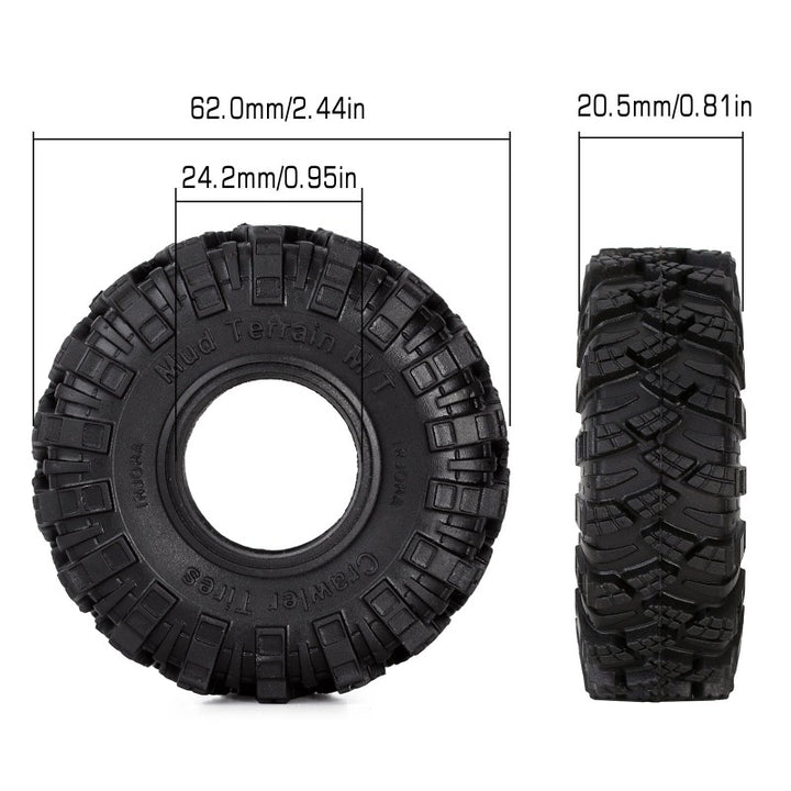 Note: 62mm tyres are too big for most 1/24 1/18 trucks and may rub against the body, so some modifications to the truck may be required!