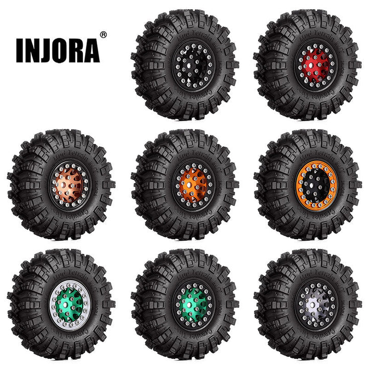 INJORA 1.0 Beadlock Wheel Rims Mud Terrain Tires Set For 1/24 RC Crawler Car Axial SCX24 Upgrade Parts