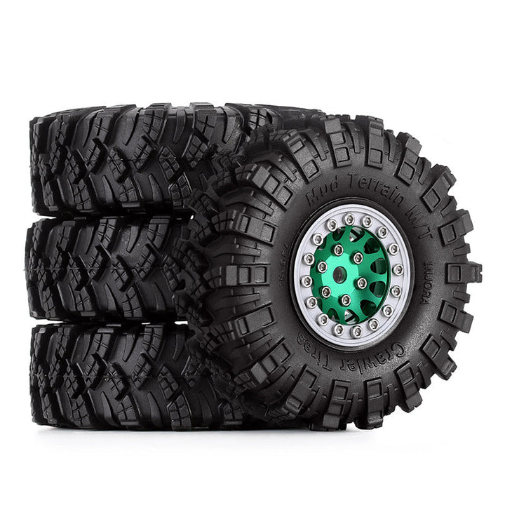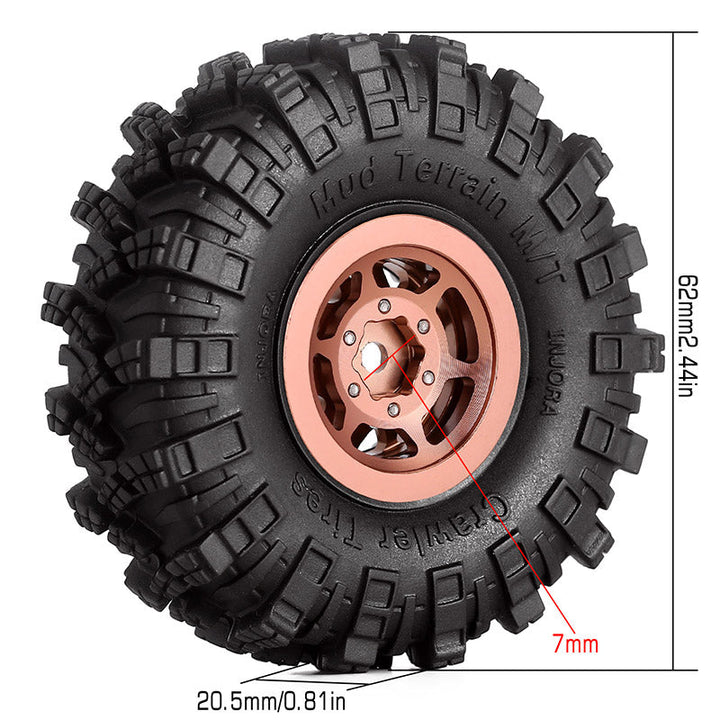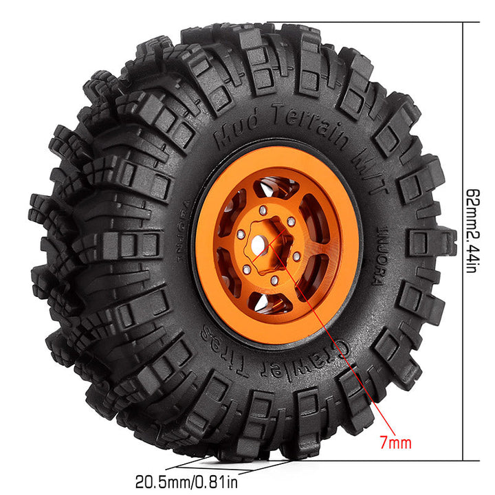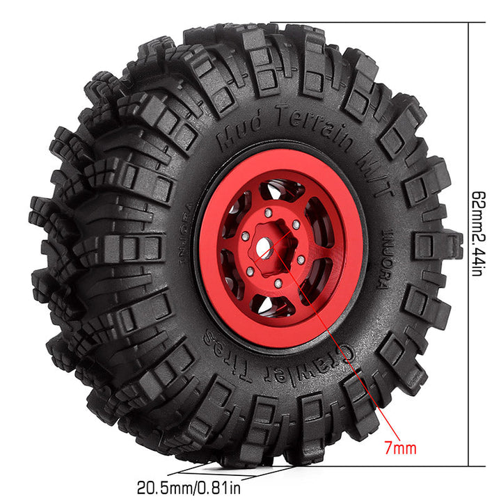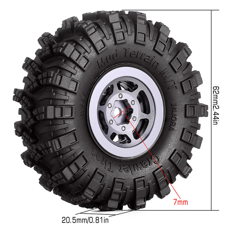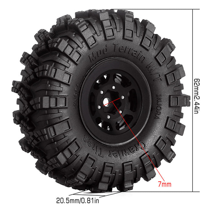INJORA 1.0" 62*20.5mm Wheel Rims Mud Terrain Tires Set for 1/24 RC Crawlers (4) (W1049-T1007)