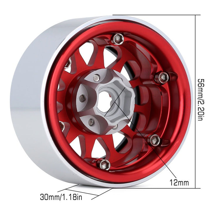 INJORA 4PCS Metal 1.9 Beadlock Wheel Rim 12-Spoke Wheel Hub for 1:10 RC Crawler Axial SCX10 II 90046 AXI03007 TRX-4 Tamiya MST