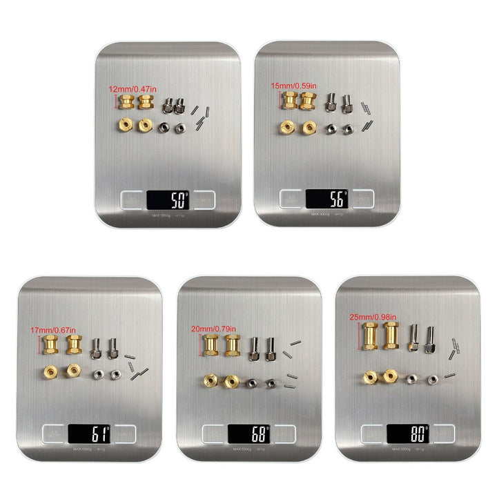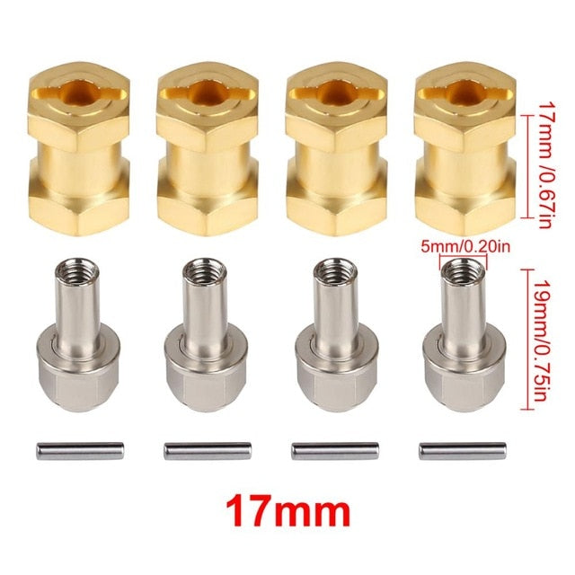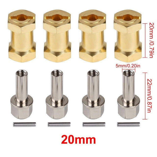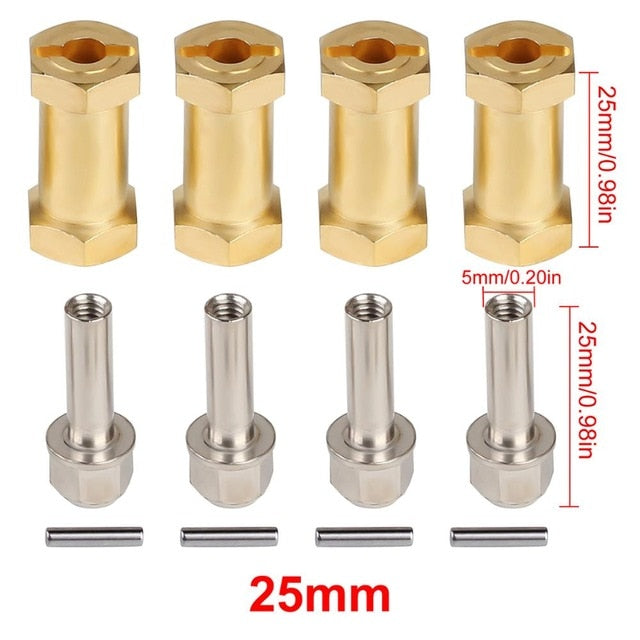 INJORA 4PCS Heavier Brass 12MM Wheel Hex 12/15/17/20/25MM Extended Adapter for 1/10 RC Crawler Car Axial SCX10 90046 D90
