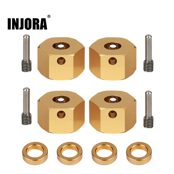 INJORA 4PCS 12mm Heavy Brass Wheel Hex Hub Extenders for Axial SCX10 III Capra 1.9 UTB