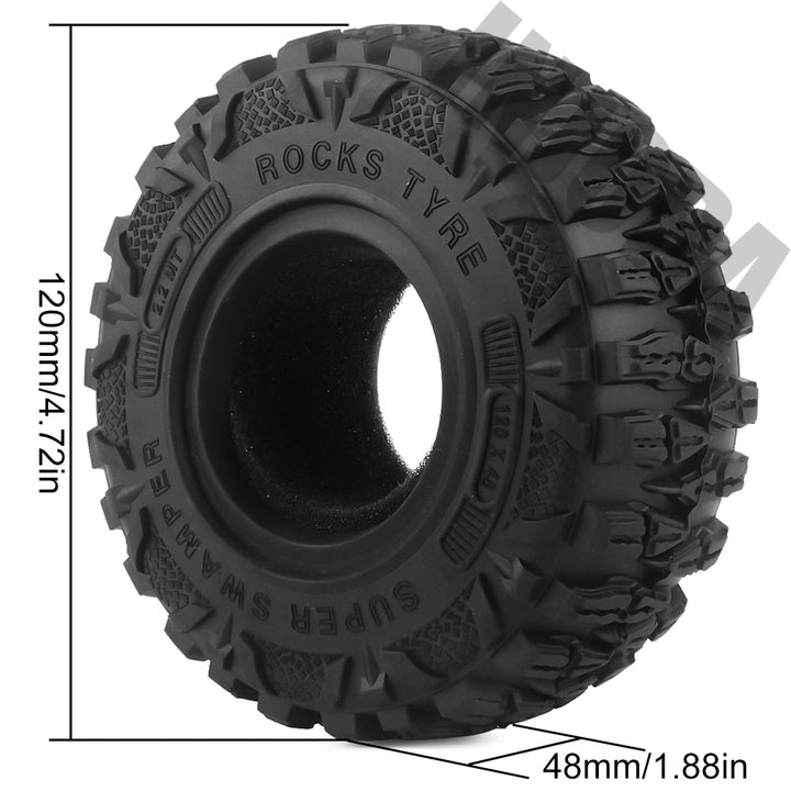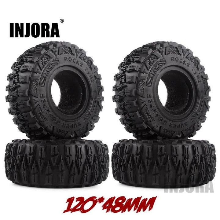 INJORA 4PCS 2.2" Mud Grappler Rubber Tyre 2.2 Wheel Tires 120*48MM for 1:10 RC Rock Crawler Traxxas TRX4 TRX-6 Axial SCX10 90046