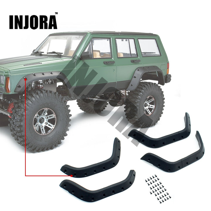 INJORA 1:10 RC Crawler Black Rubber Fender Flares for Axial SCX10 II 90046 90047 Body Car Shell