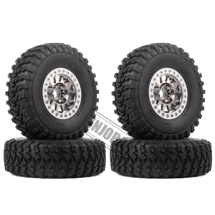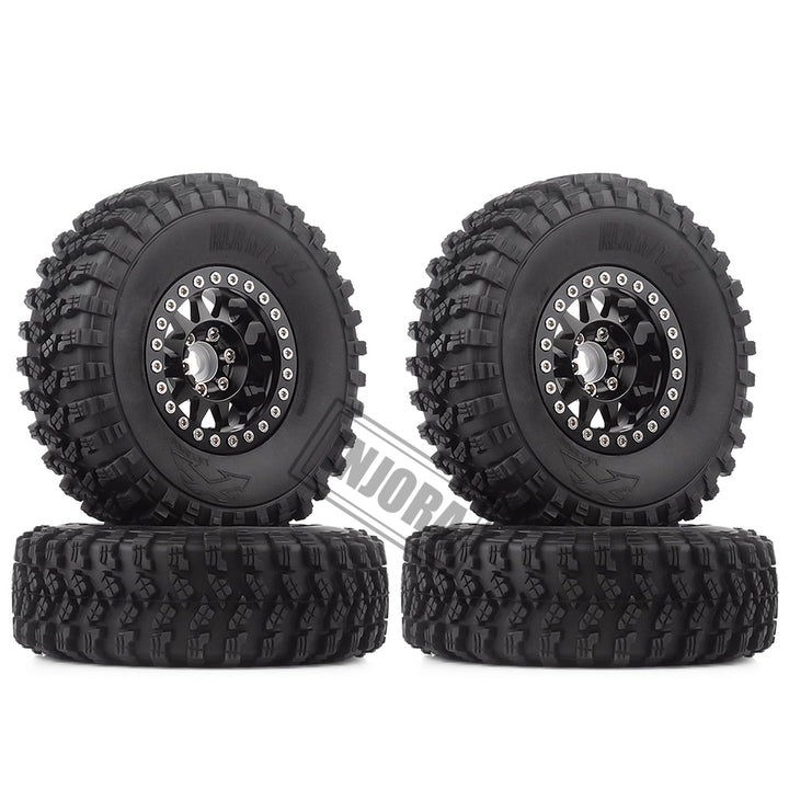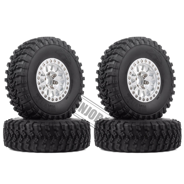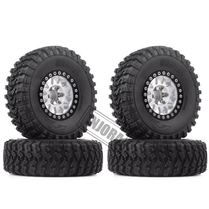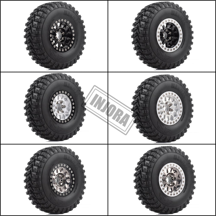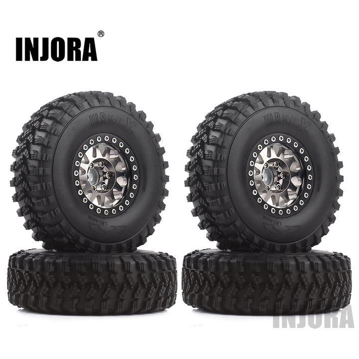 INJORA 4Pcs 1.9 Beadlock Wheel Rim Rubber Tire Set for 1/10 RC Crawler Traxxas TRX-4 Axial SCX10 90046 D90 Voodoo KLR