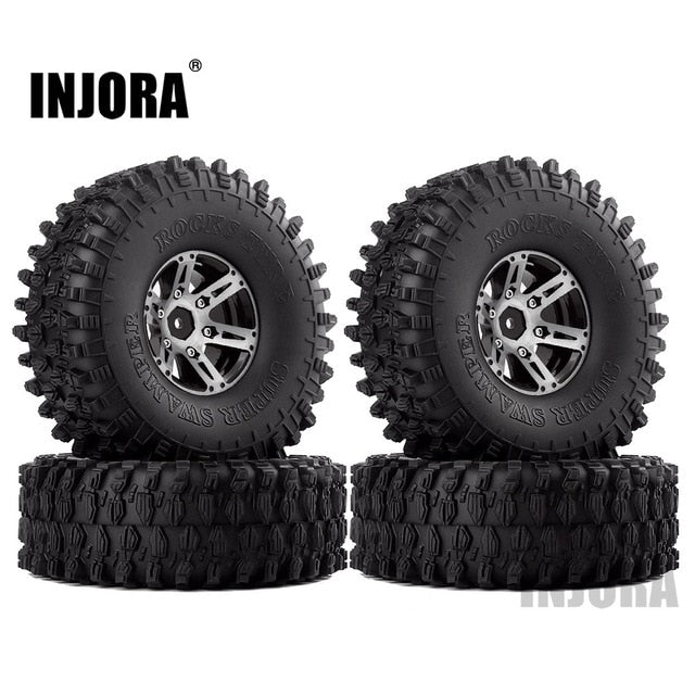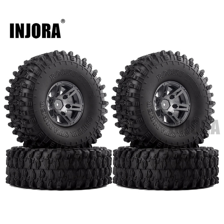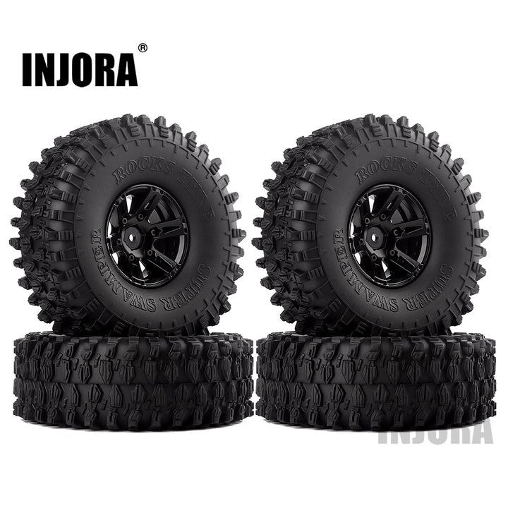INJORA 4Pcs 1.9" Beadlock Wheel Rim & 1.9 Rubber Tires Set for 1/10 RC Crawler Axial SCX10 90046 RC Car Parts