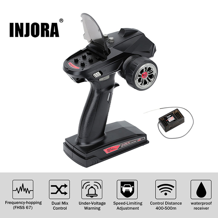 INJORA 6CH 2.4GHz Remote Control Digital Radio Transmitter with Gyro Receiver for 1/8 1/10 RC Car Boat Tank Crawler TRX4 SCX10