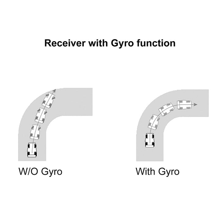 - 9. The receiver's integrated gyro(optional), ensures that the RC vehicles stay in course,preventing measure, drifts and turnovers. Supports gyro sensitivity adjustment.
