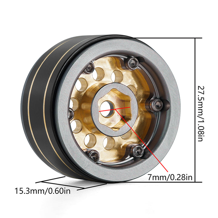 INJORA 1.0" 39g/pcs Brass Beadlock Wheels Negative Offset 2.65mm for 1/24 1/18 RC Crawlers (W1008)