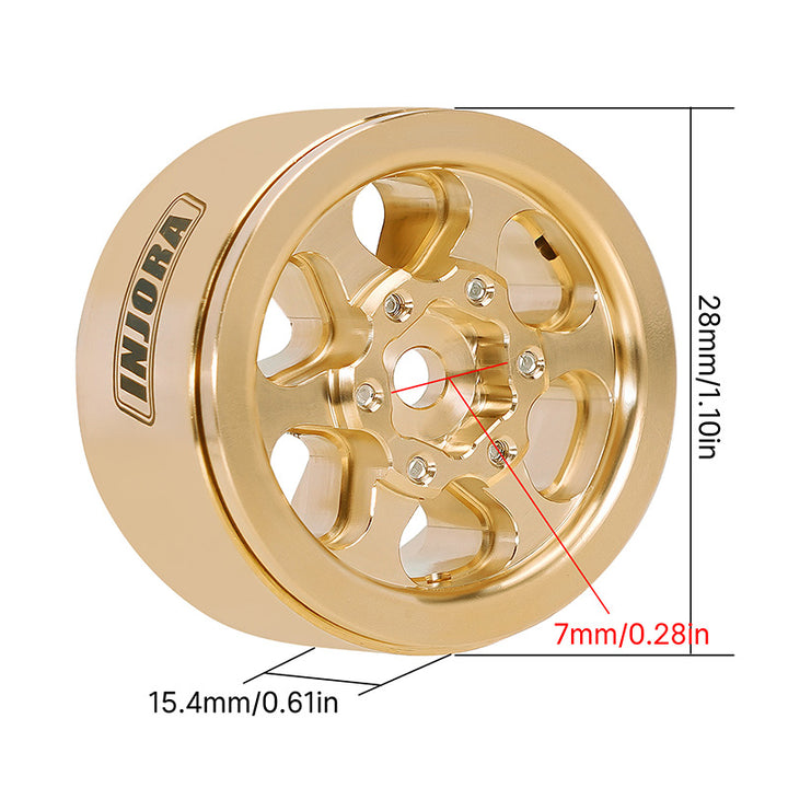 INJORA 1.0" 40g/pcs Brass Beadlock Wheels Offset -4.7mm for 1/24 1/18 RC Crawler SCX24 FCX24 TRX4M Ascent18 (W1011)
