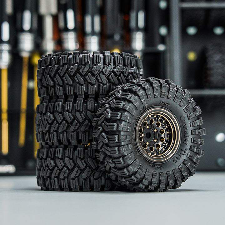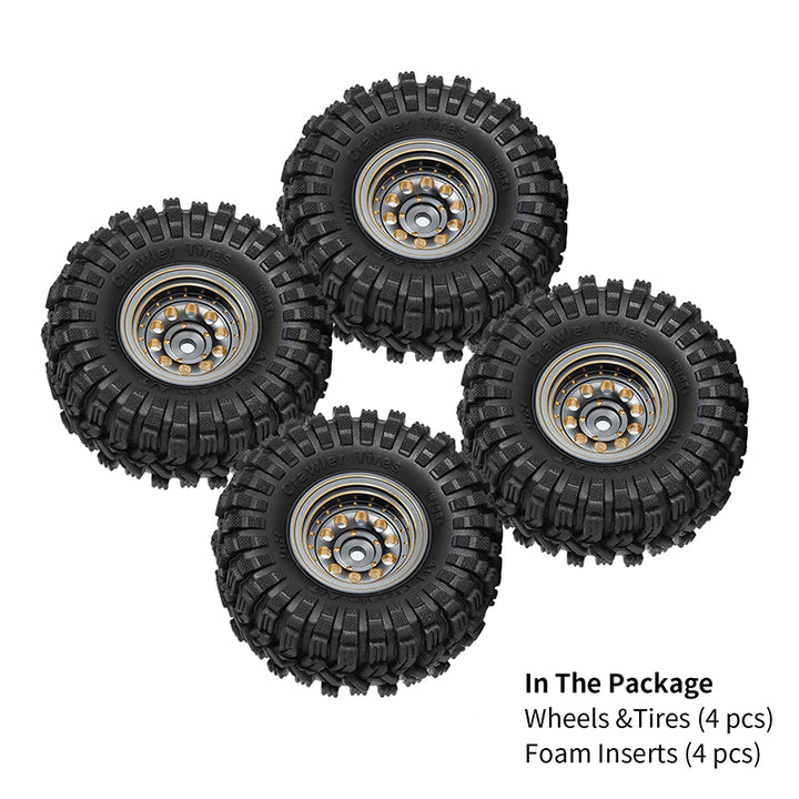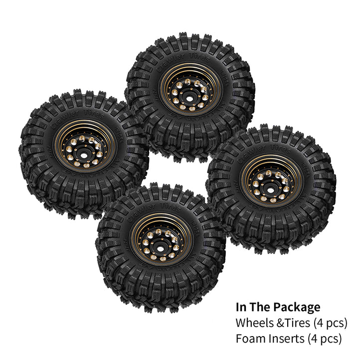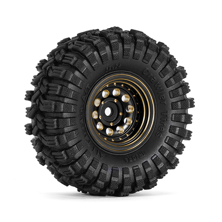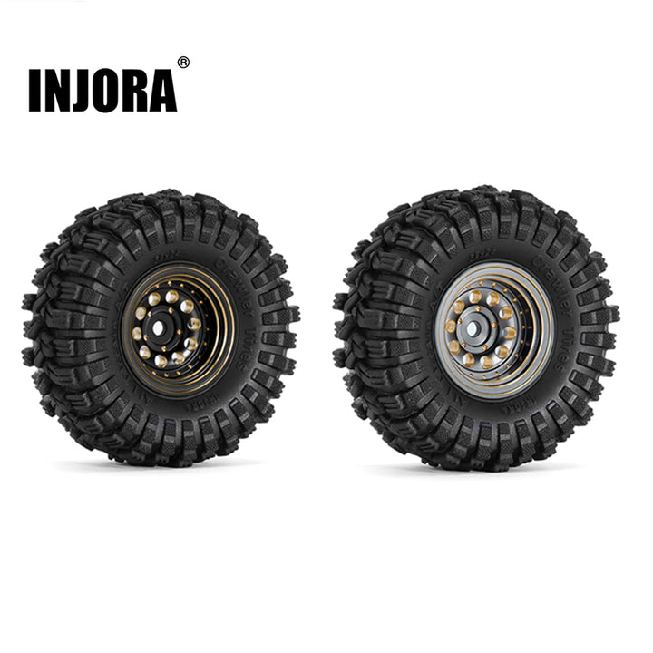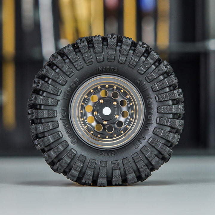 INJORA Black Coating Brass 1.0" Beadlock Wheel Tires Set for 1/24 1/18 RC Crawler Car Axial SCX24 AX24 TRX4M FCX24