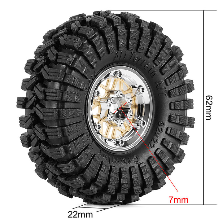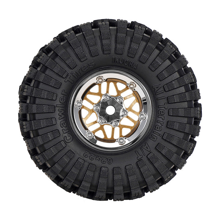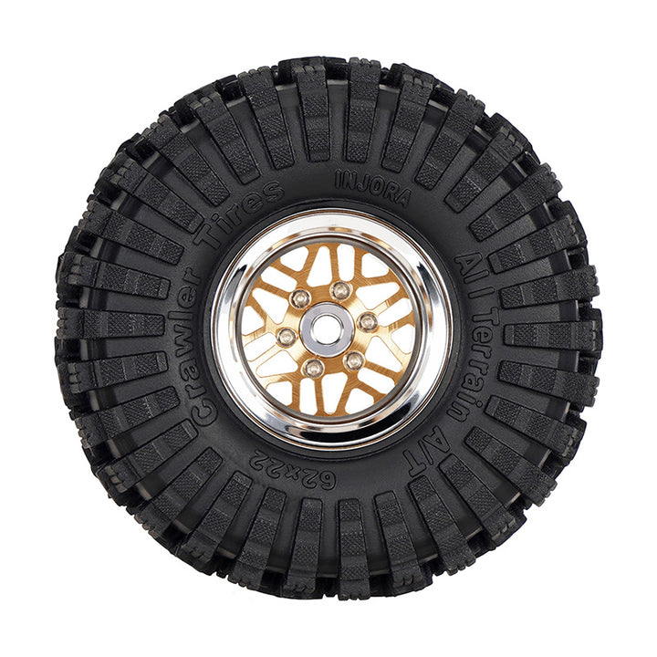 INJORA 1.0" 62*22mm Offset -4.4mm Beadlock Wheels Tires Set for 1/18 1/24 RC Crawlers