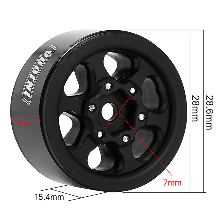 INJORA 1.0" Aluminium Beadlock Wheels Negative Offset 4.7mm for 1/24 1/18 RC Crawler