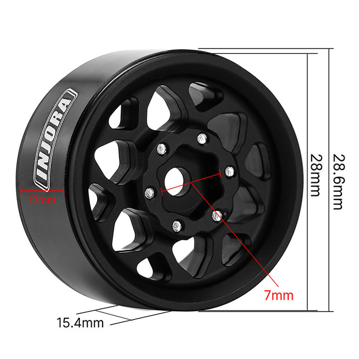 INJORA 1.0" Aluminum Beadlock Wheels Negative Offset 4.7mm for 1/24 1/18 RC Crawler
