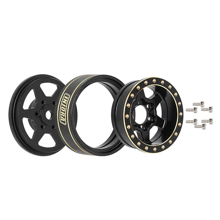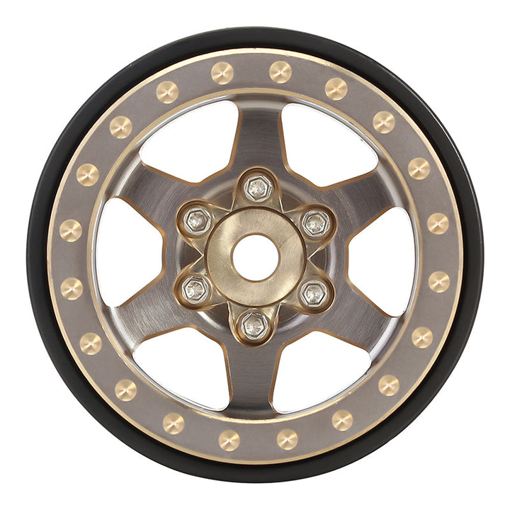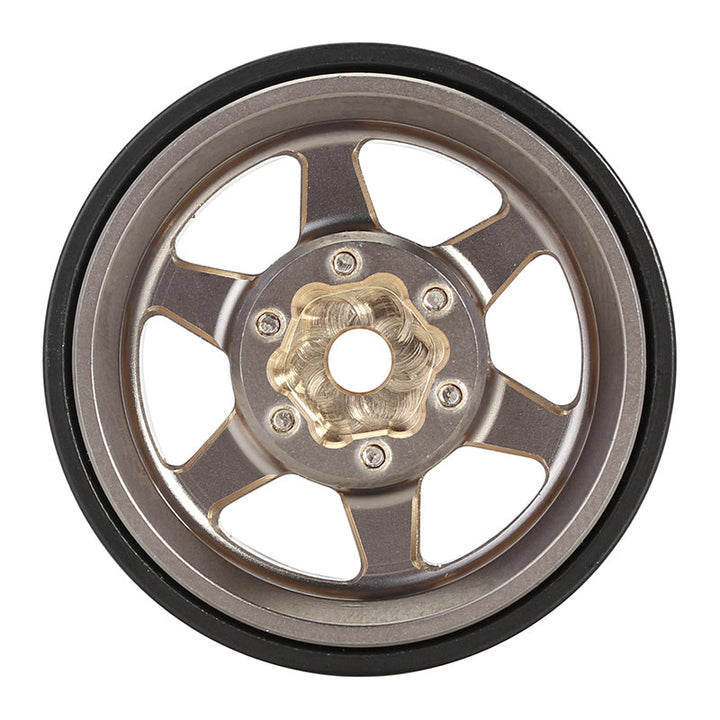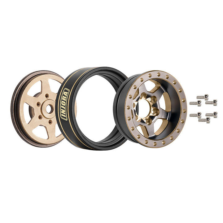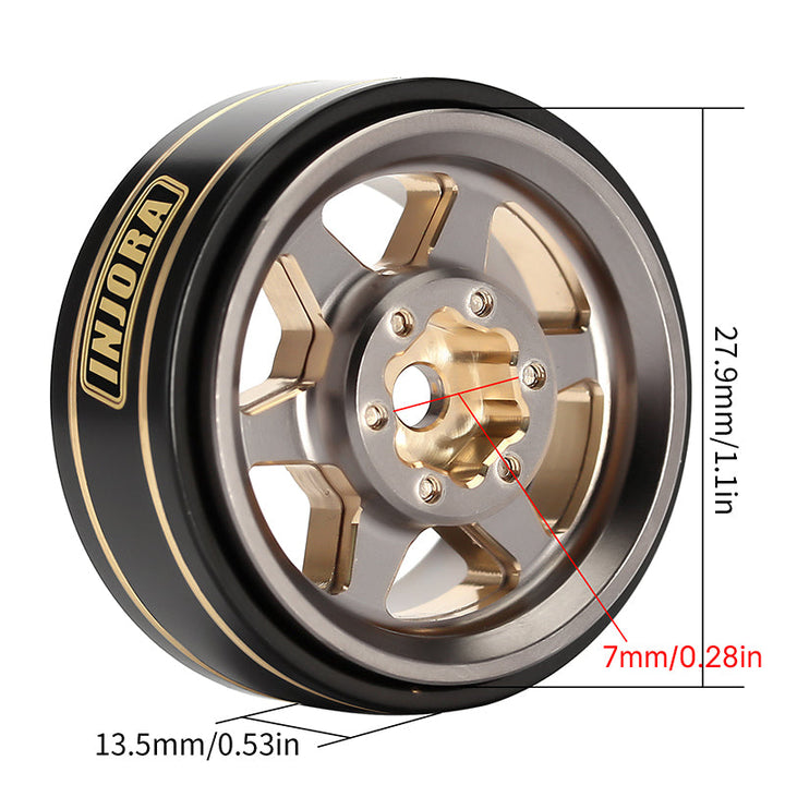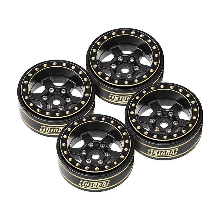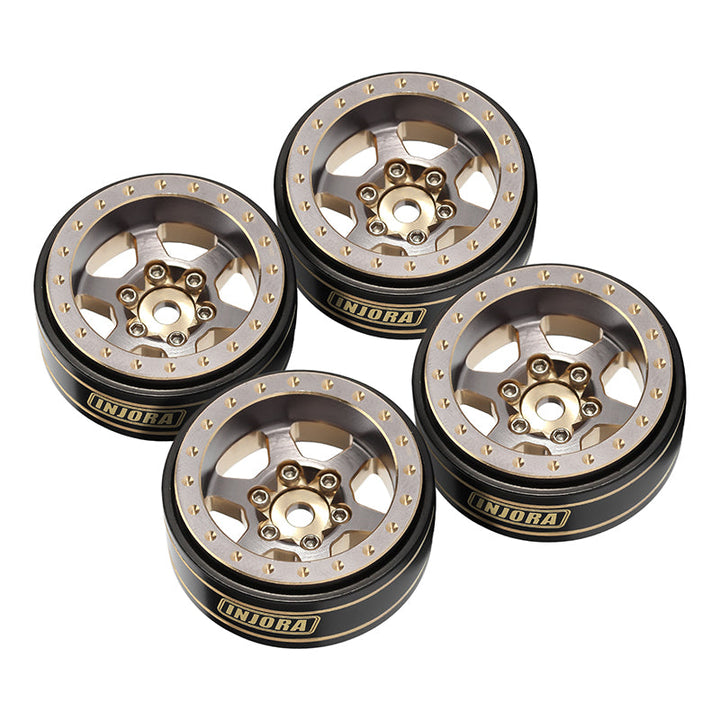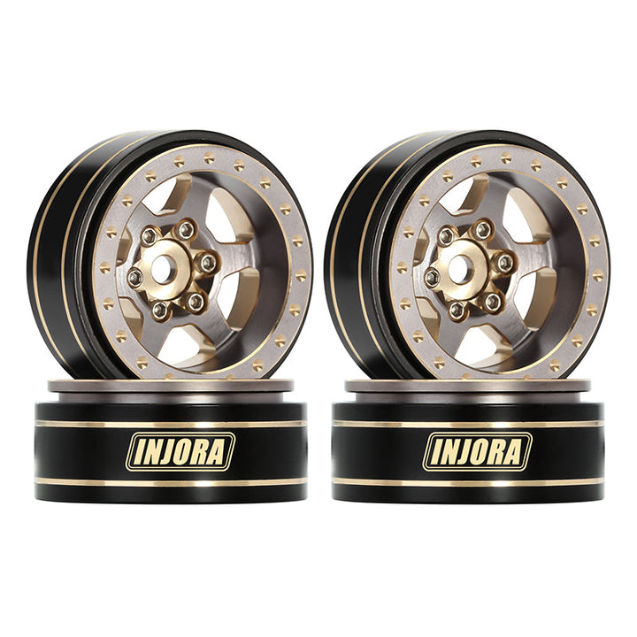 INJORA 1.0 Plus 6-Spoke Brass Beadlock Wheels 42g/pcs offset -3.75mm for 1/18 1/24 RC Crawler (4) (W1102)
