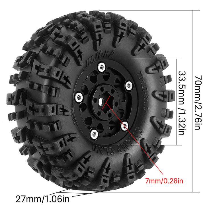 INJORA 1.3" 70*27mm Aluminum Wheels with Swamp Claw Tires for 1/18 1/24 RC Crawlers (W1305)