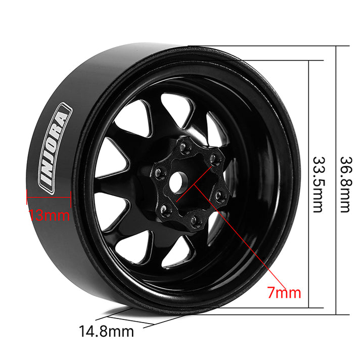 INJORA 1.3" Stamped Steel Wheels -4.05mm Offset for 1/24 1/18 RC Crawlers (W1312)