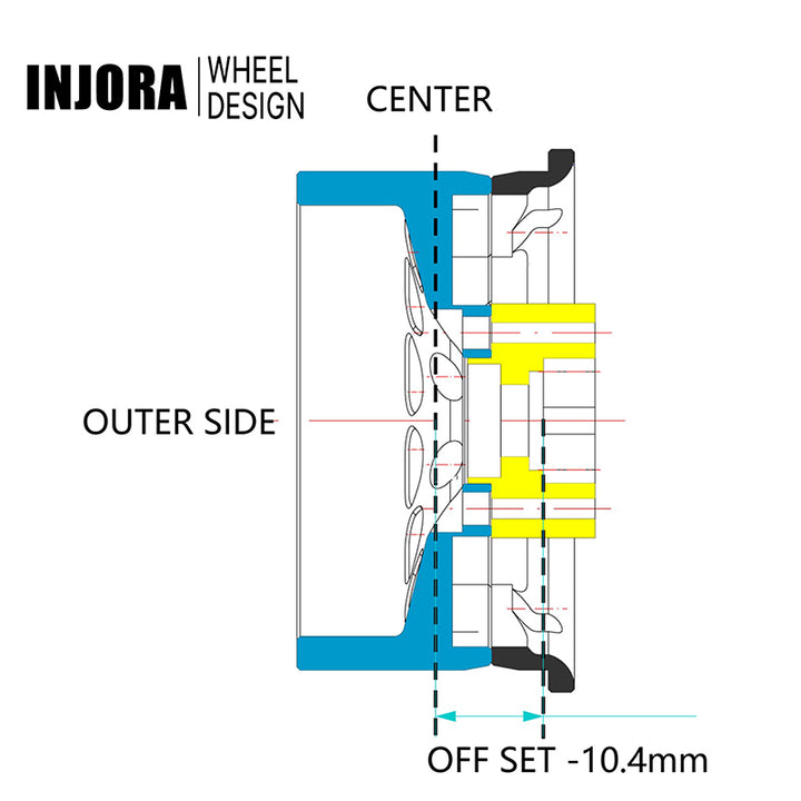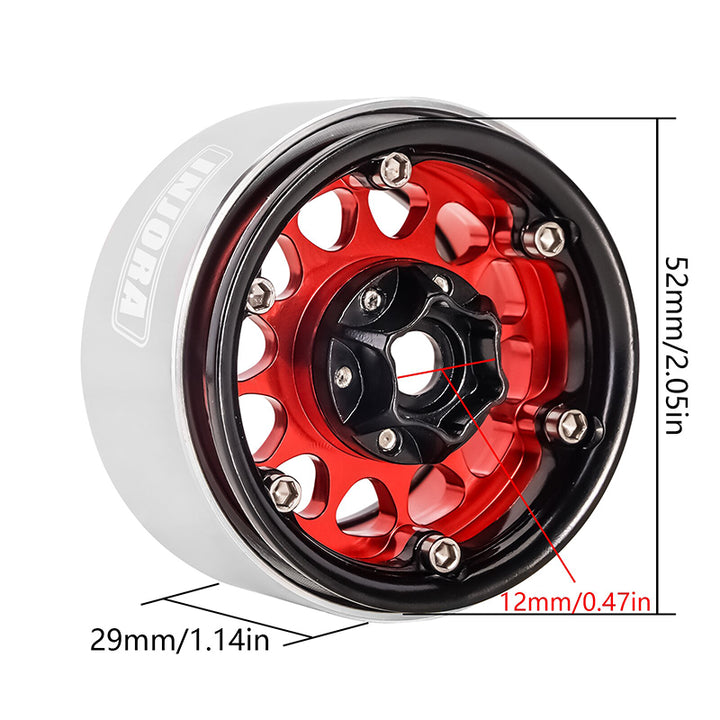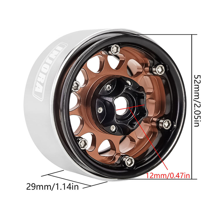 INJORA CNC Aluminum 1.9" Beadlock Deep Dish Negative Offset 10.4mm Wheel Rim for 1/10 RC Crawler Car TRX4 Axial SCX10 (W1949)
