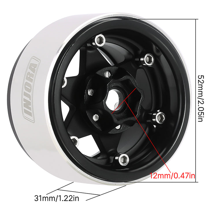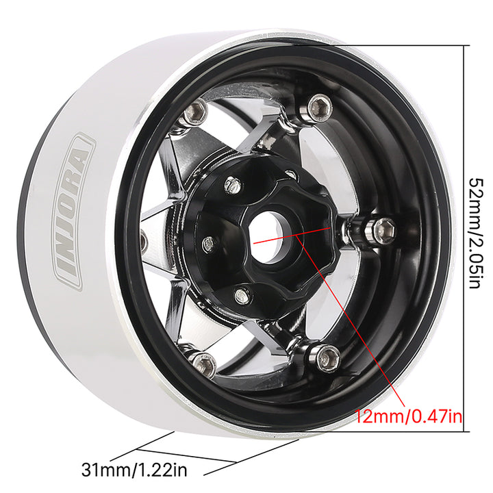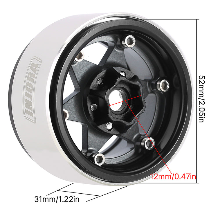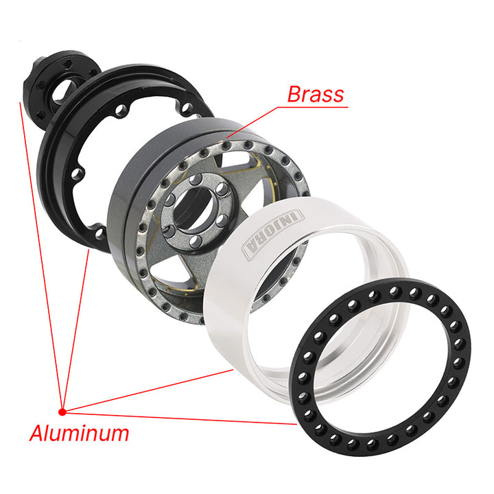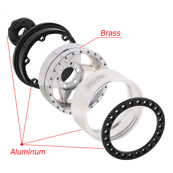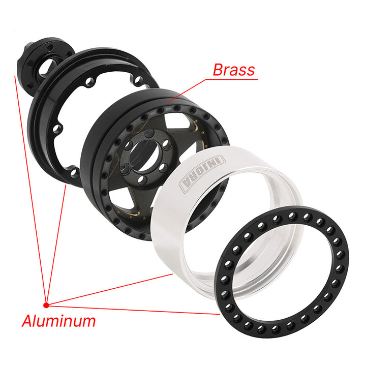 INJORA 1.9" Super Heavy Brass & Aluminum Beadlock Wheels Offset -10mm for 1/10 RC Crawlers (4) (W1958)