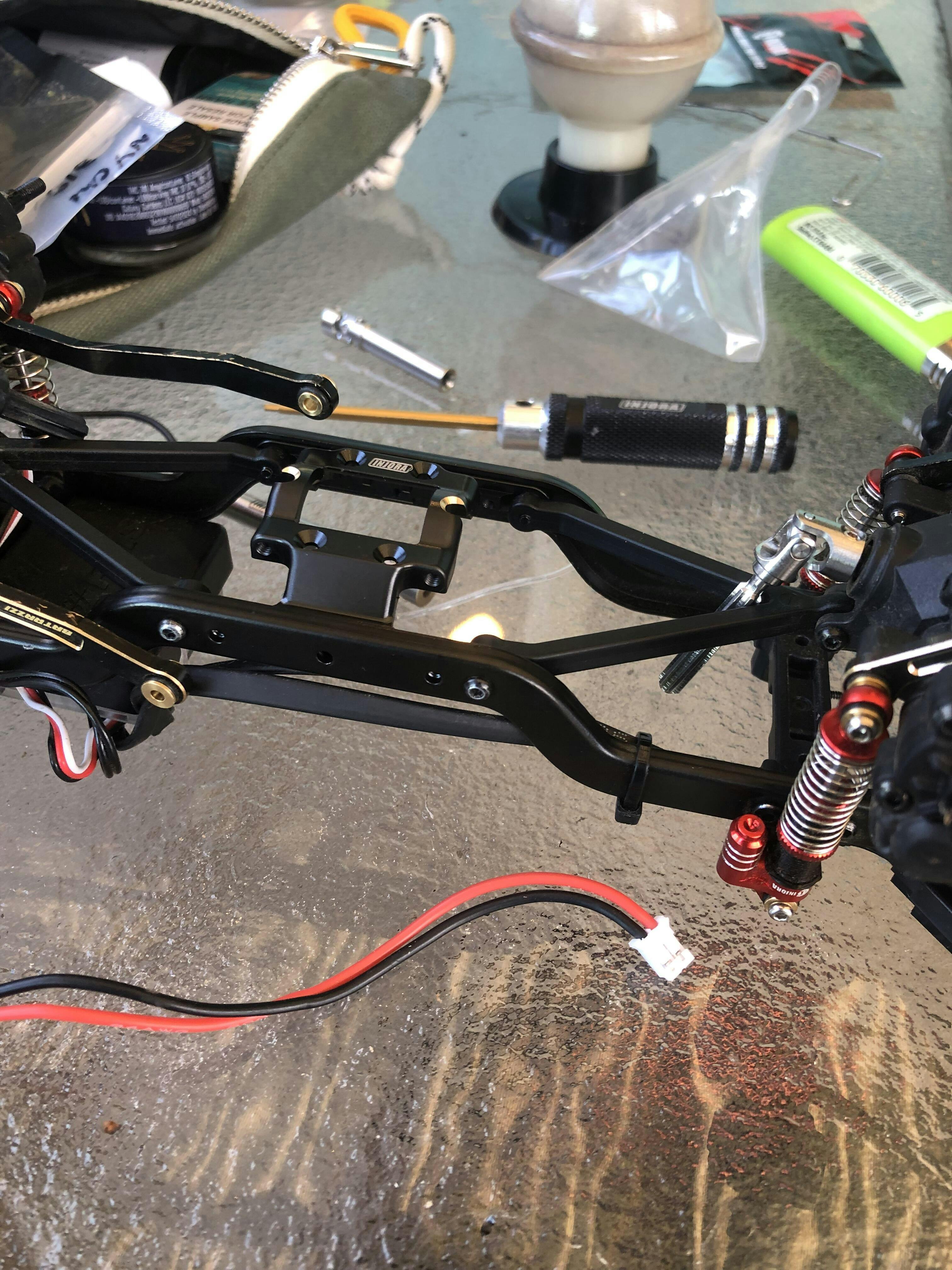 - The shock oil is not included! Add only enough oil for a heavy coating. Do not fully fill shock body.