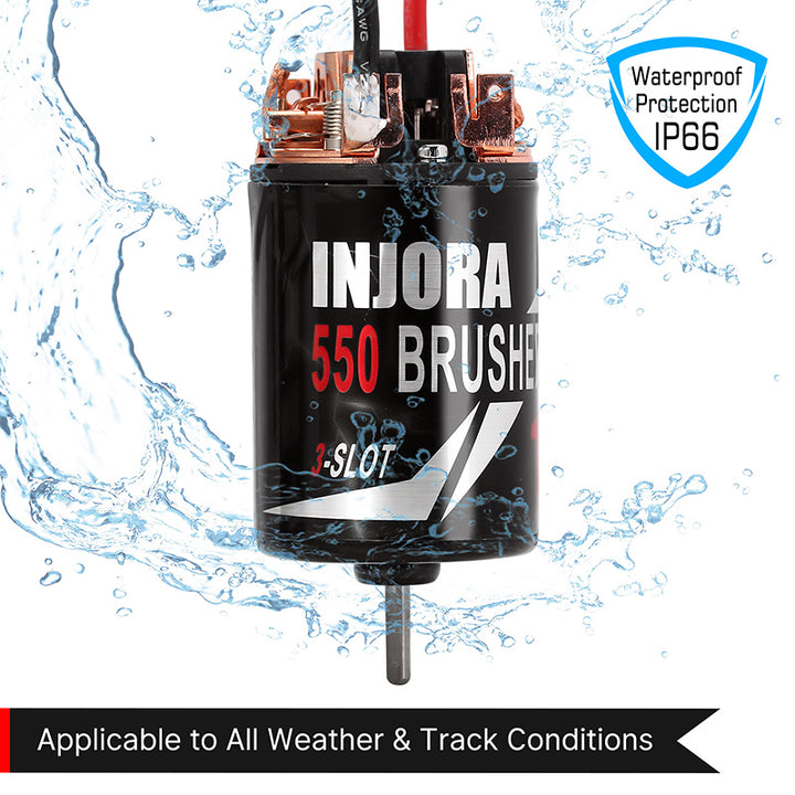 - INJORA 550 3-slot Brushed Waterproof Motor is a upgrade motor built for messy, dirty, off road action