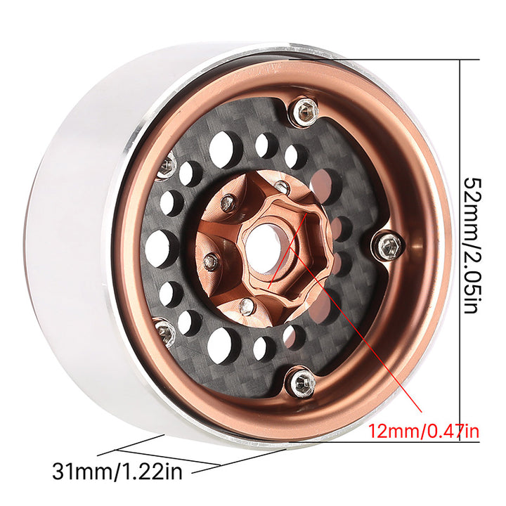 INJORA Offset -10mm Carbon Fiber Aluminum 1.9" Beadlock Wheel Rim for 1/10 RC Crawler SCX10 TRX4 VS4-10 Gen8 (W1953)