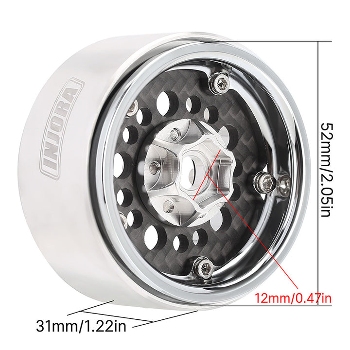 [Clearance Sale] INJORA 1.9" Deep Dish Carbon Aluminum Beadlock Wheels Offset -10mm for 1/10 RC Crawlers (W1953)