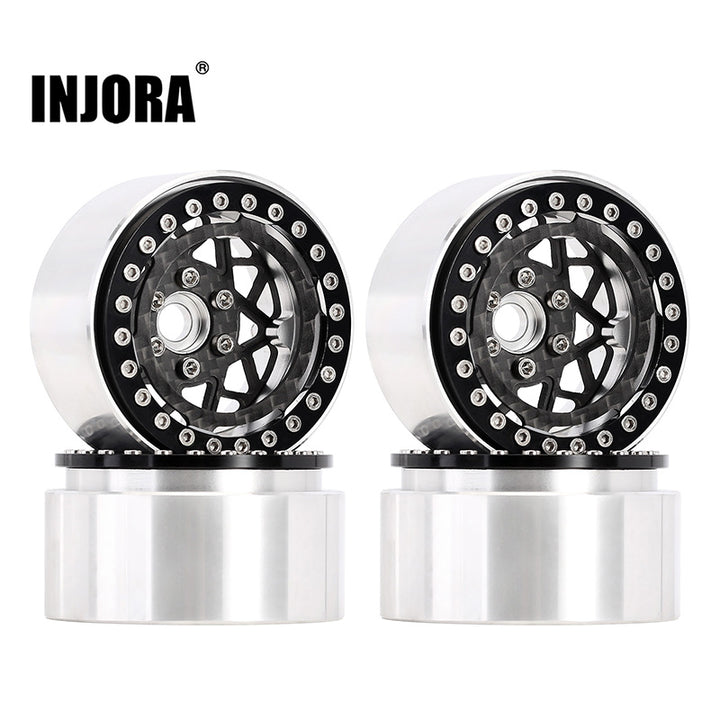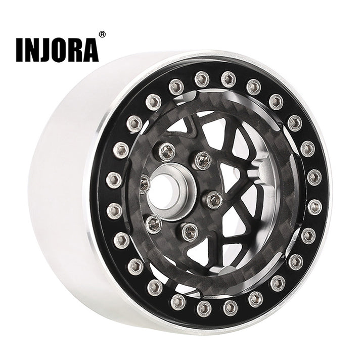 INJORA Carbon Fiber Aluminum Negative Offset 10mm 1.9" Beadlock Wheels for 1/10 RC Crawlers (W1952)