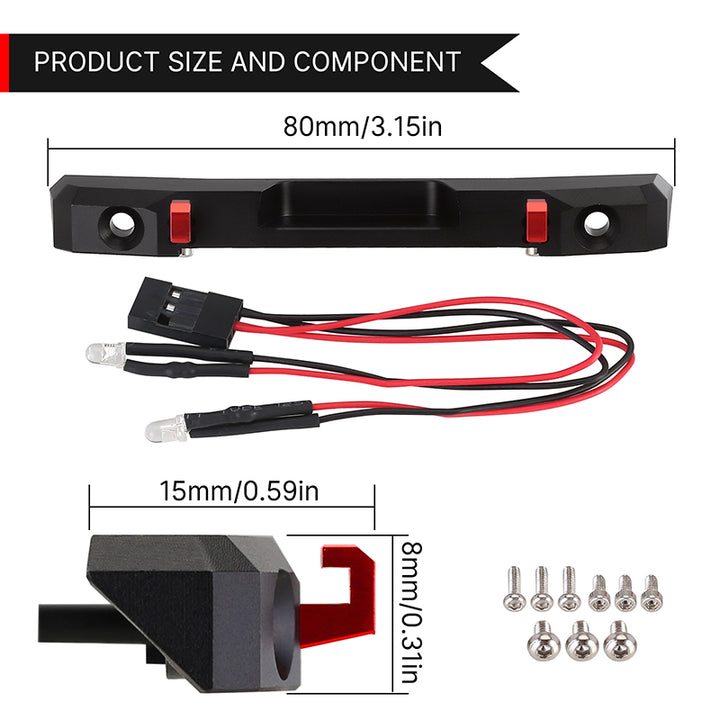 INJORA CNC Aluminum Rear Bumper with Lights for SCX24 Jeep Wrangler JLU
