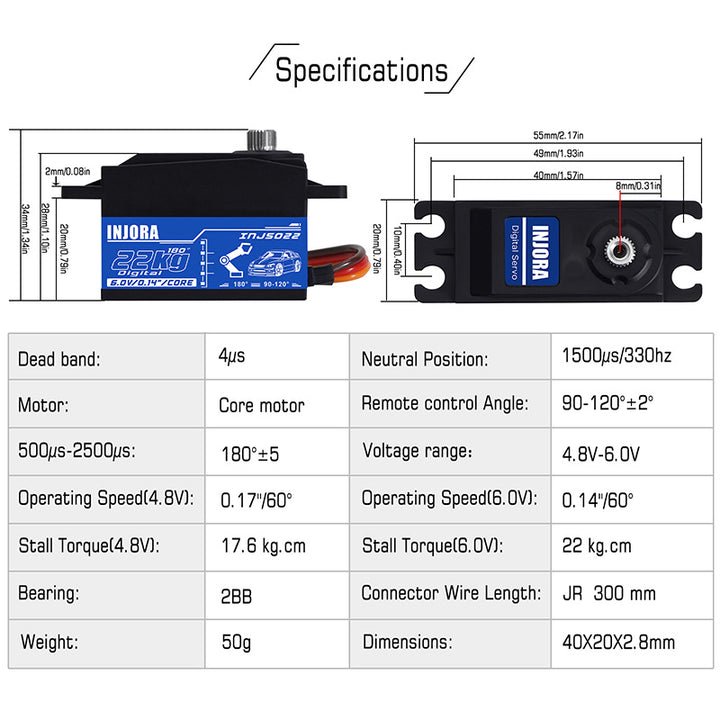 INJORA INJS022 22KG Low Profile Digital Servo for 1/10 RC Car Robot Model