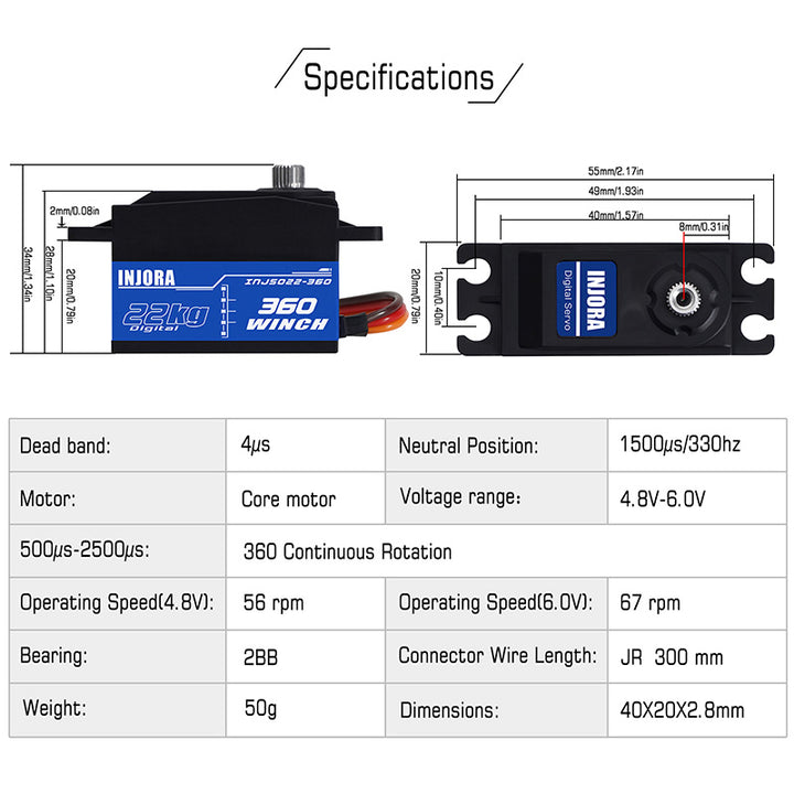 INJORA INJS022-360 22KG 360° Rotation Digital Servo Winch Spool for RC Crawler Car Boat Model