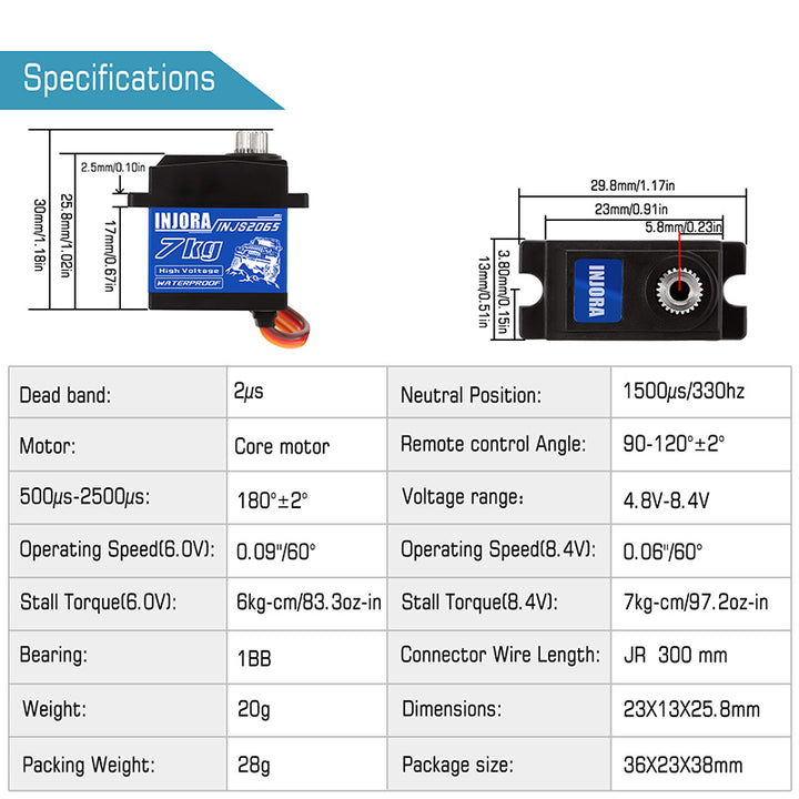 INJORA 7KG 2065 Digital Servo Waterproof High Voltage Sub Micro Shift Servo