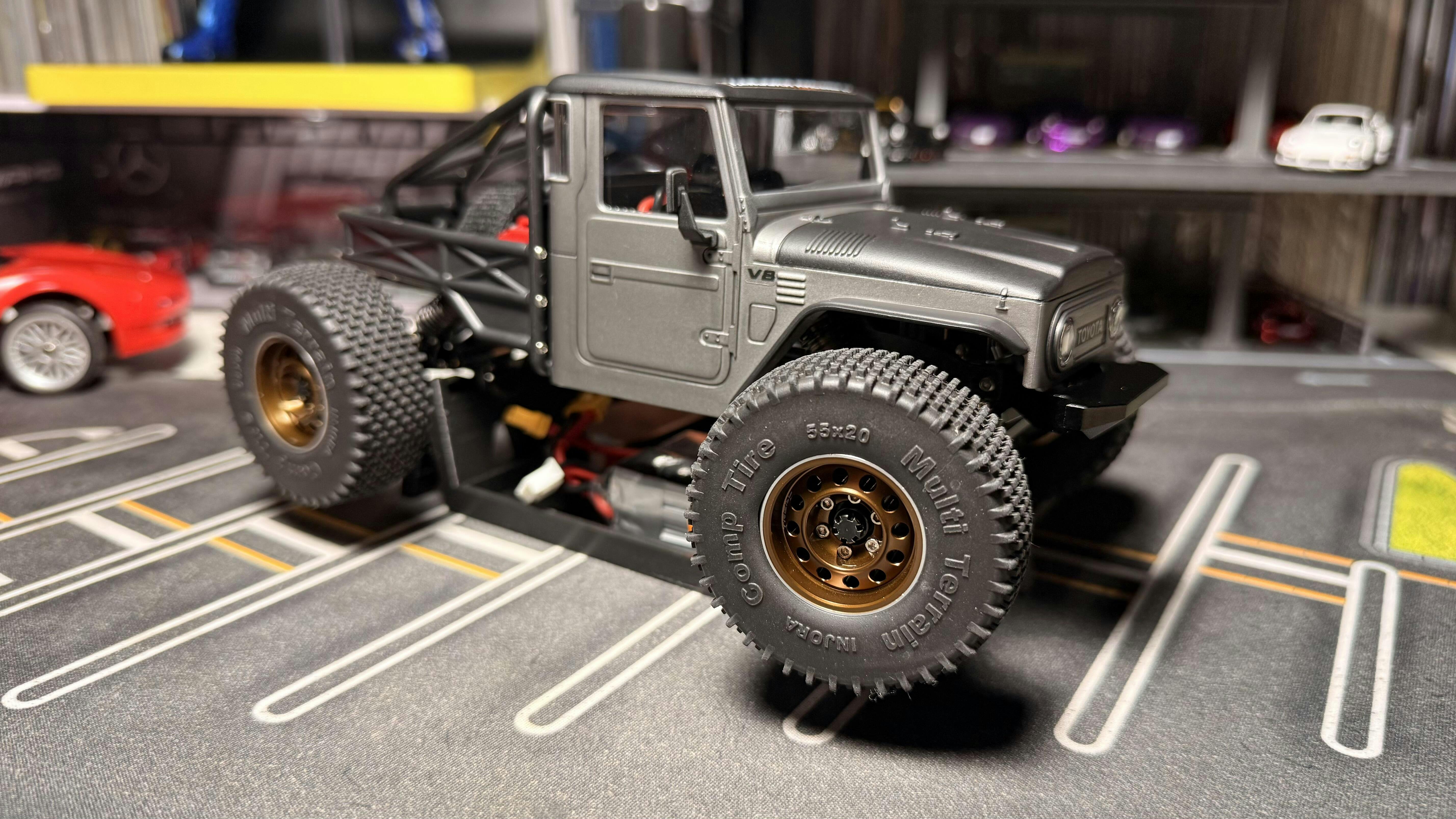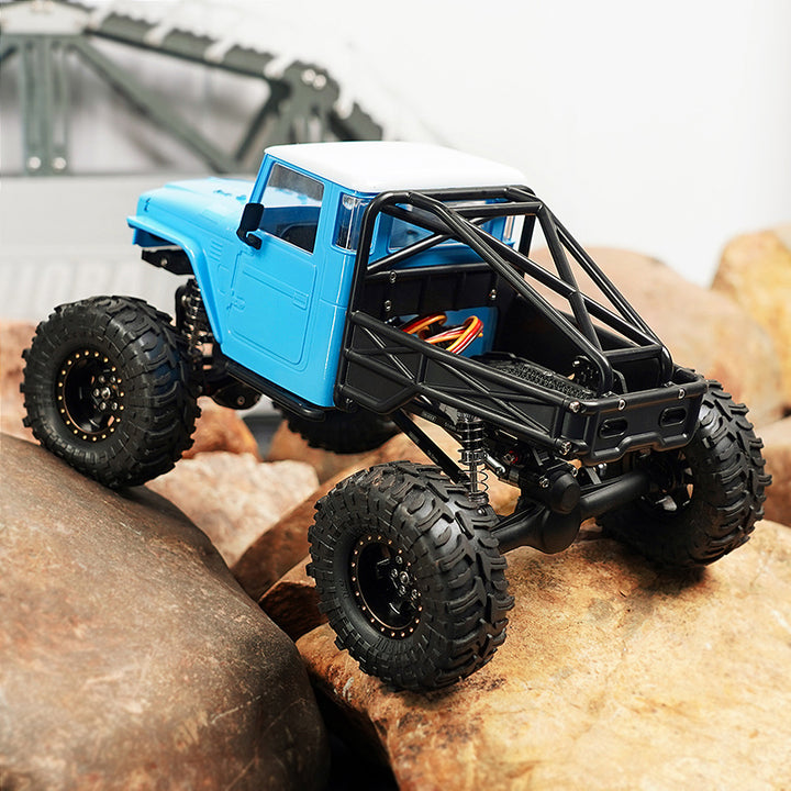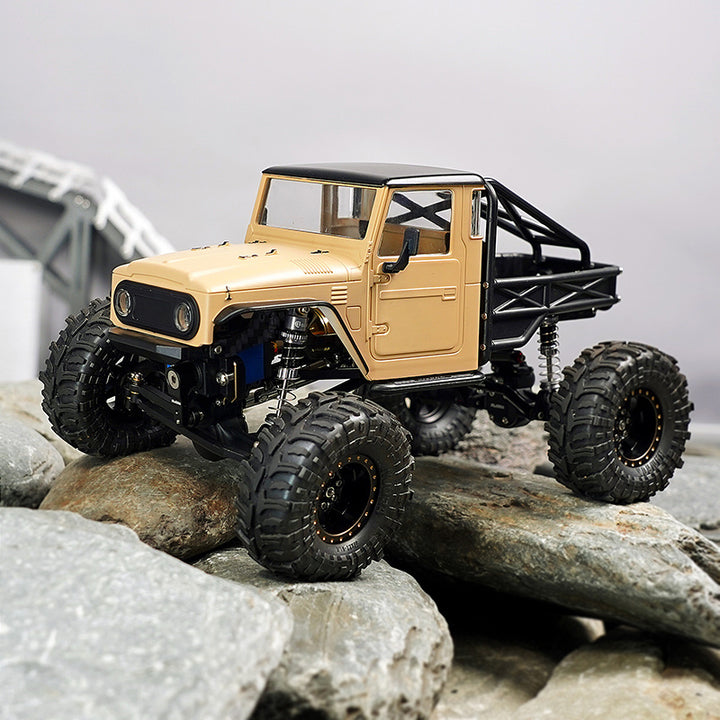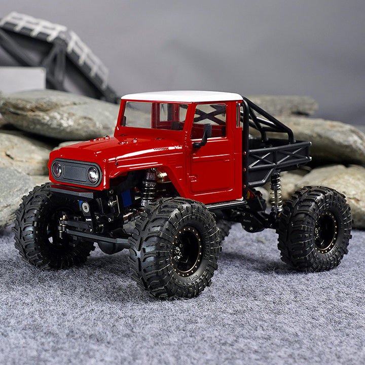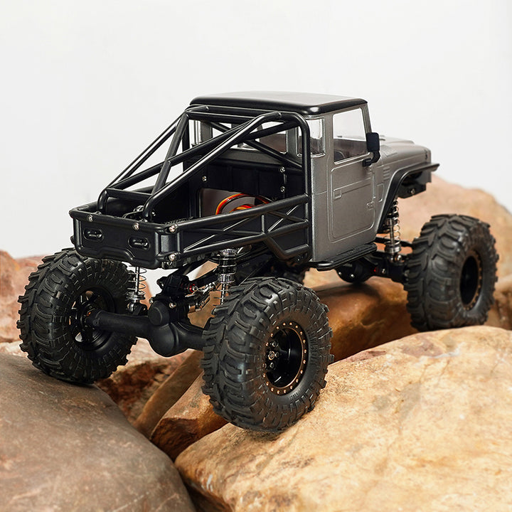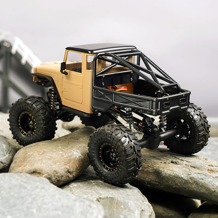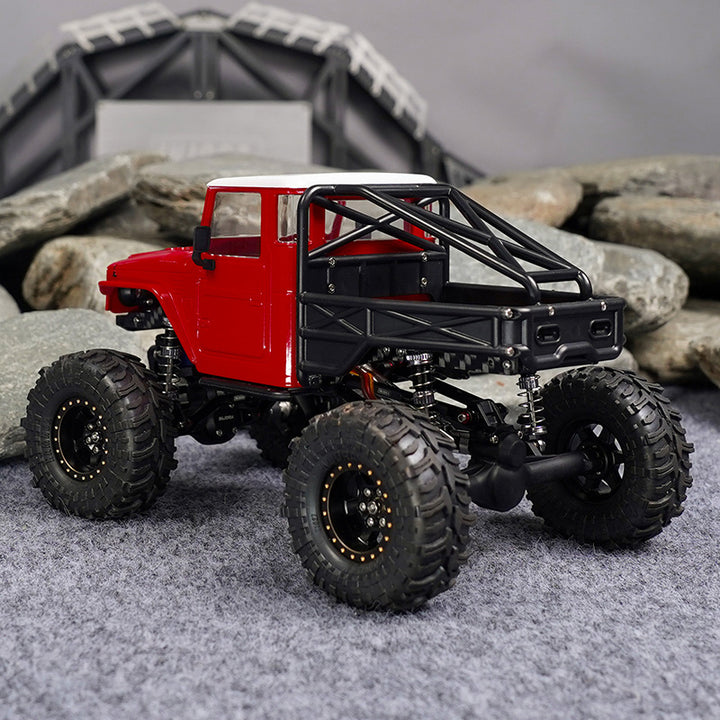 - Features scale details including rock sliders, back cage, clear windows, side mirrors, and a front grille for added realism