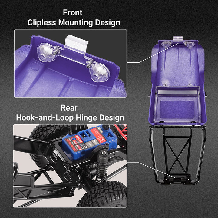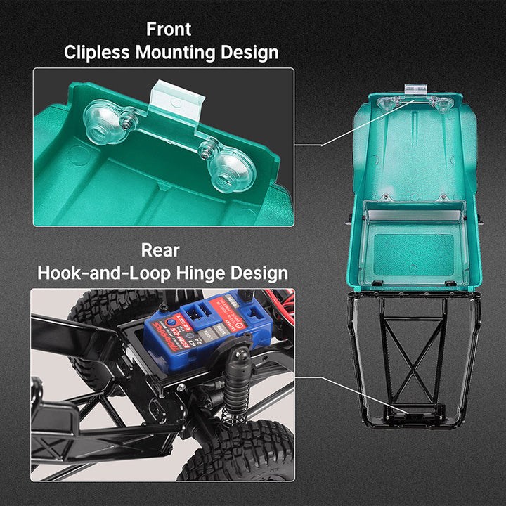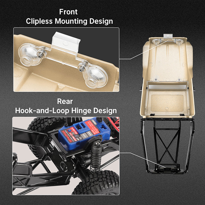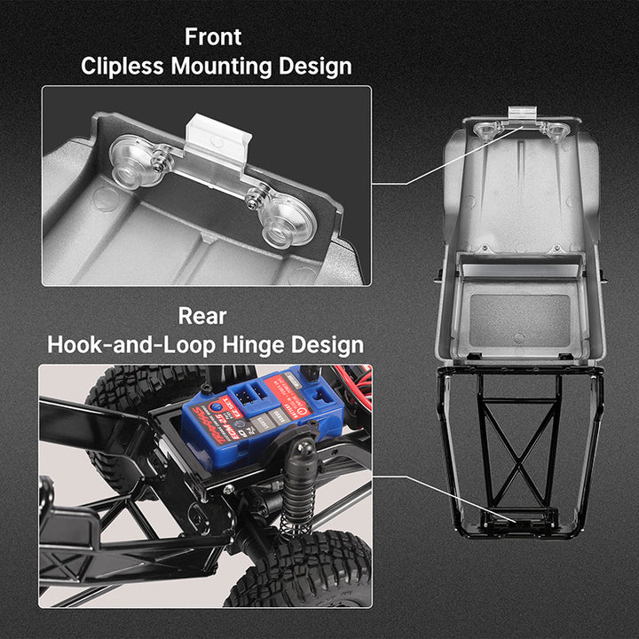 - Four screws, endless possibilities. Attach the body shell to the chassis with just a twist. Easy as that!