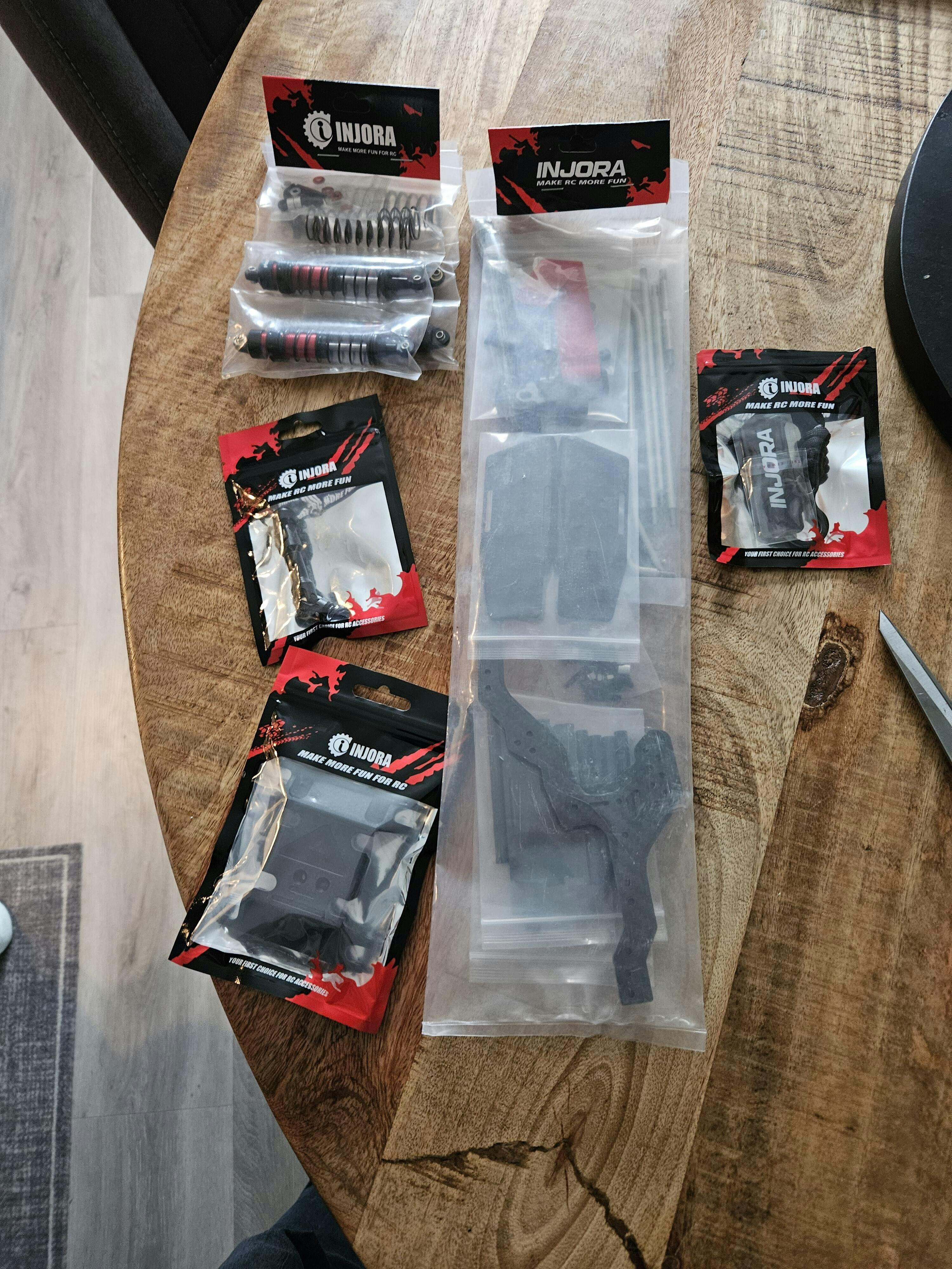 INJORA 1/10 LCG (low center of gravity) Chassis Girders, made of high-quality carbon fiber material.