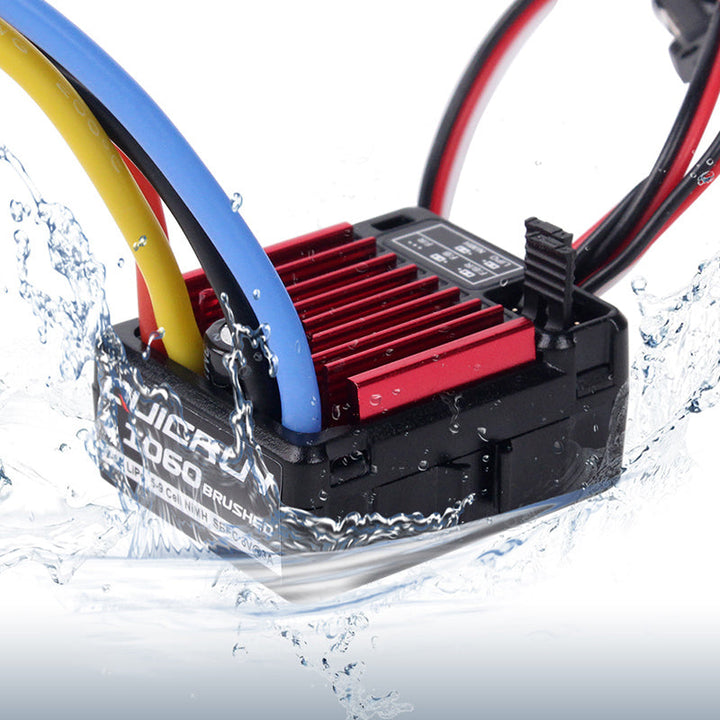 Skid Plate, Transmission, Drive Shafts, Shocks, Axles, Servo, ESC, Motor, Radio Control, Battery.
