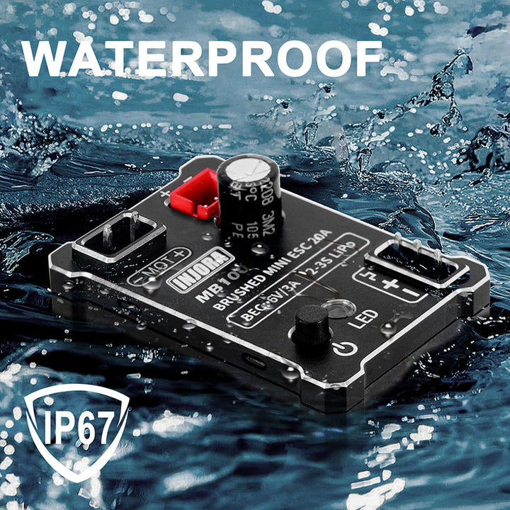 - Multiple Protection: battery low-voltage protection, over-heat protection, throttle signal loss protection, BEC over current protection, and short circuit protection