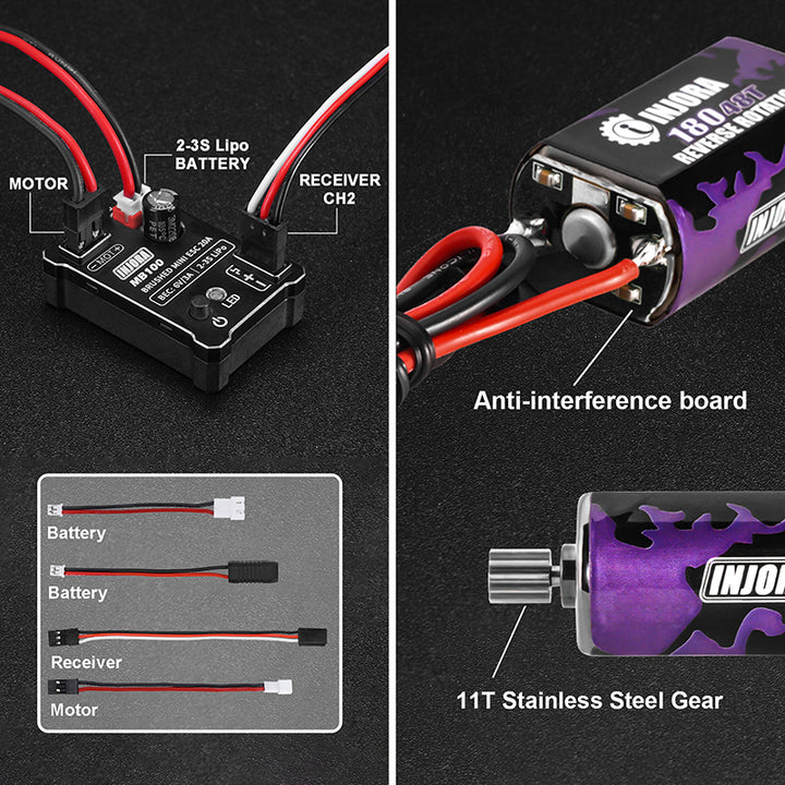 INJORA MB100-R80 20A Brushed Mini ESC with 180 Motor 48T for 1/18 RC Crawler TRX4M Upgrade