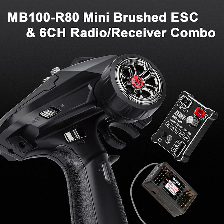 INJORA MB100-R80 ESC and 6CH Transmitter Receiver for 1/18 1/24 RC Crawlers