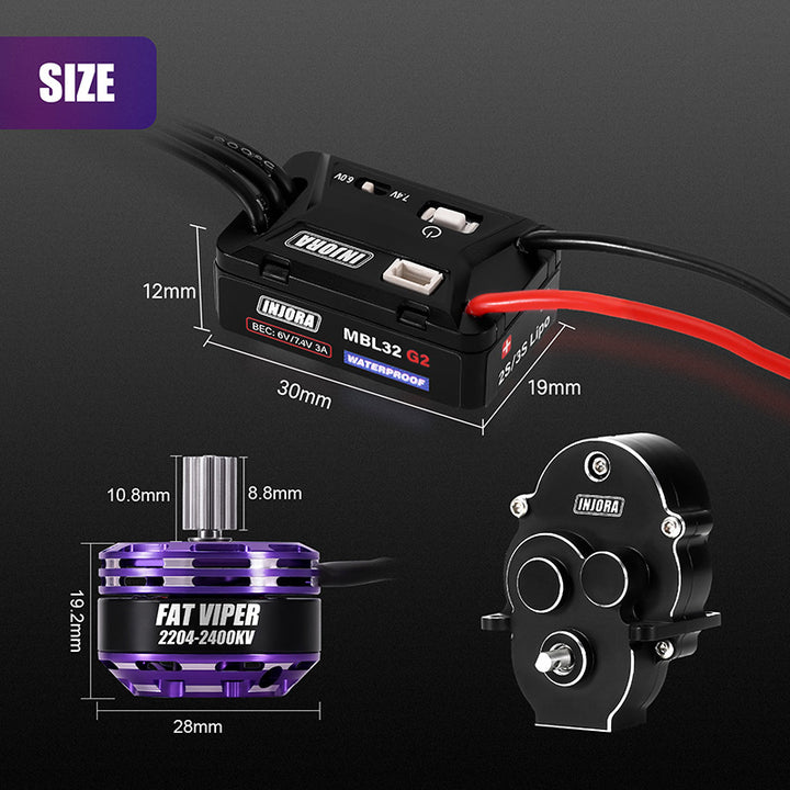 INJORA MBL32 G2 Waterproof Brushless ESC & 2204 Fat Viper Outrunner Motor for 1/18 TRX4M
