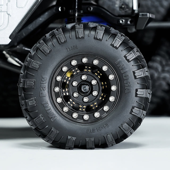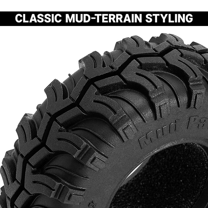 - The INJORA Mud Paw tires feature a classic mud-terrain styling reminiscent of the early generations of off-road tires.