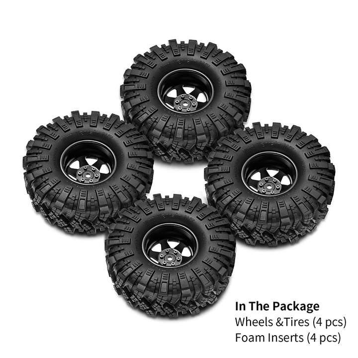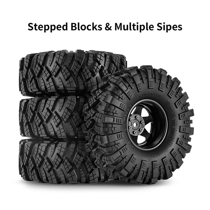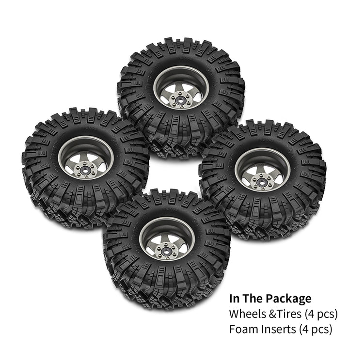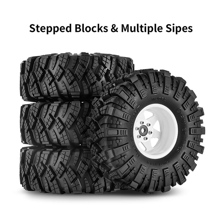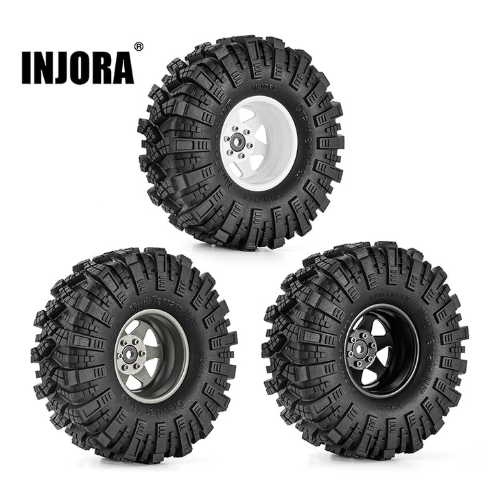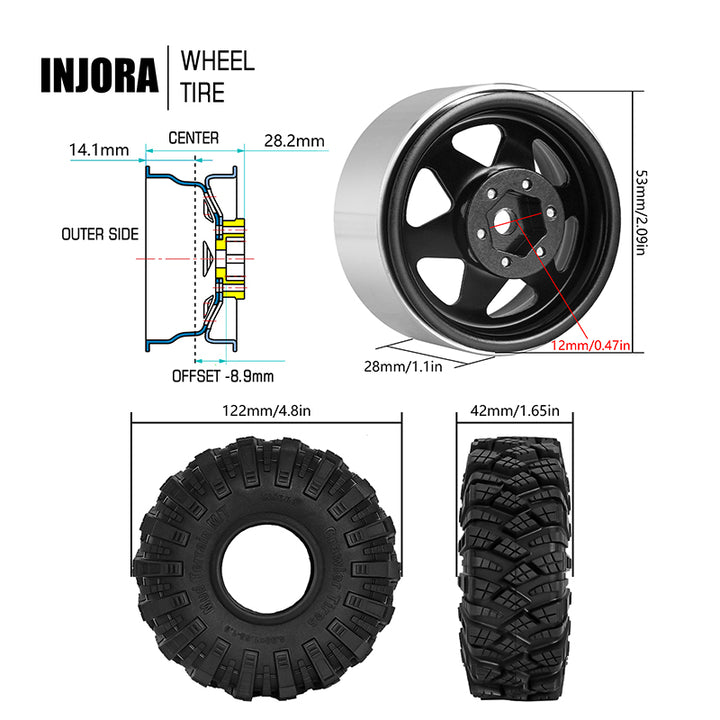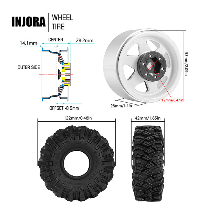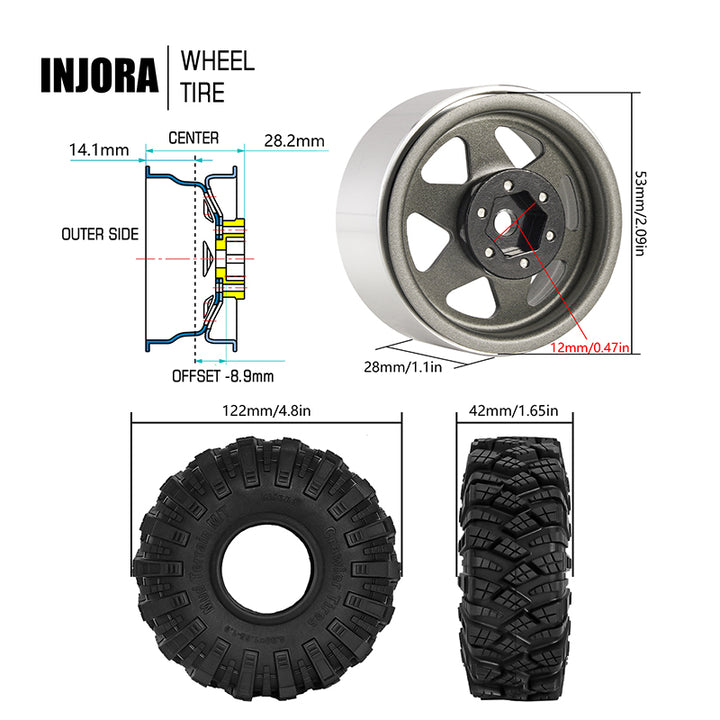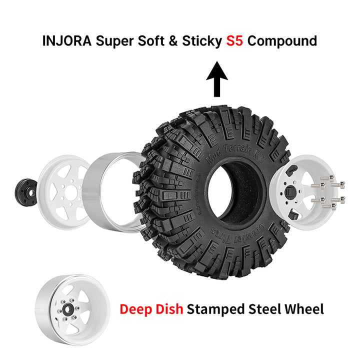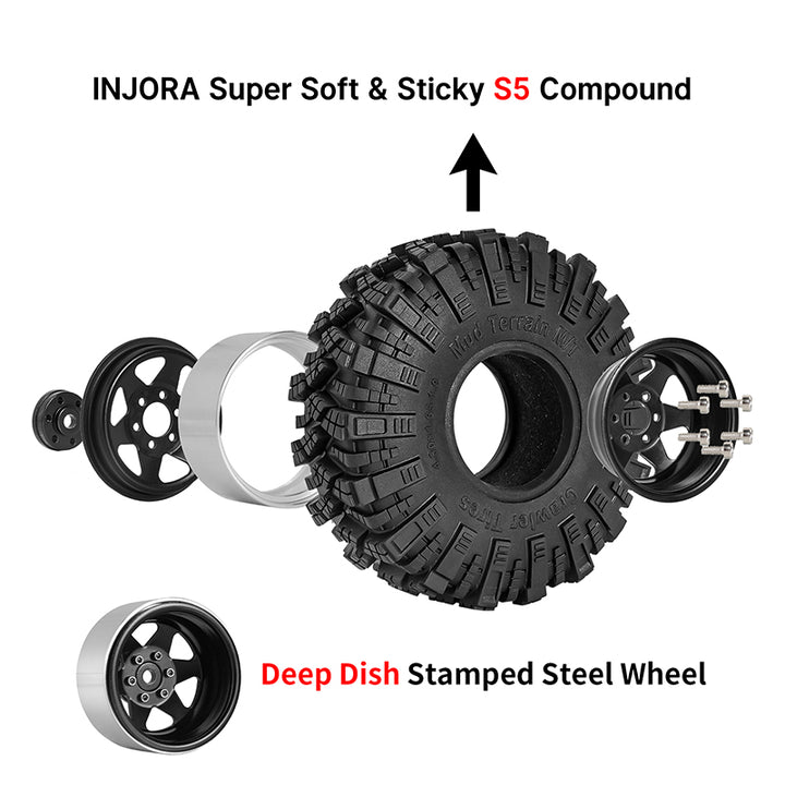 INJORA Offset -8.9mm 1.9" Beadlock Wheels S5 Mud Tires Set for 1/10 RC Crawler