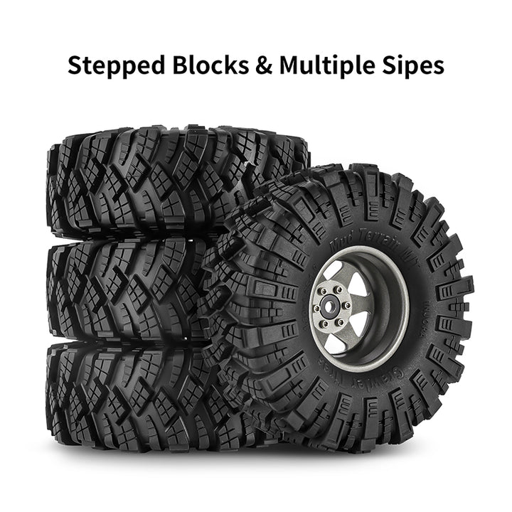 - 1.9 mud terrain tires with deep and aggressive lug pattern