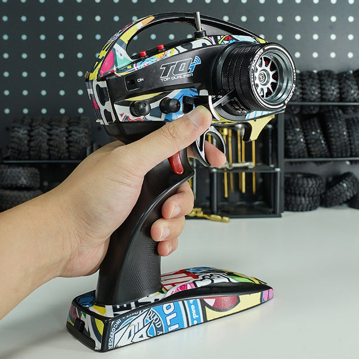 The steering wheel features a unique brake disc design that greatly enhances the overall appearance of the transmitter while offering improved stability for a more precise steering feel. Removable one-handed control bracket also improves playability and convenience a lot.