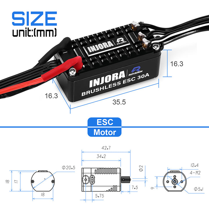 - Only compatible with INJORA Brushless Sensored 180 Motor